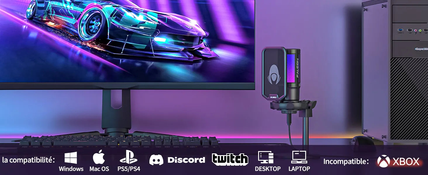 Le microphone à condensateur cardioïde capte avec précision le son avant et réduit le bruit des côtés et de l'arrière. Amplifie très bien votre voix. Un cadeau parfait pour les joueurs et les YouTubeurs.