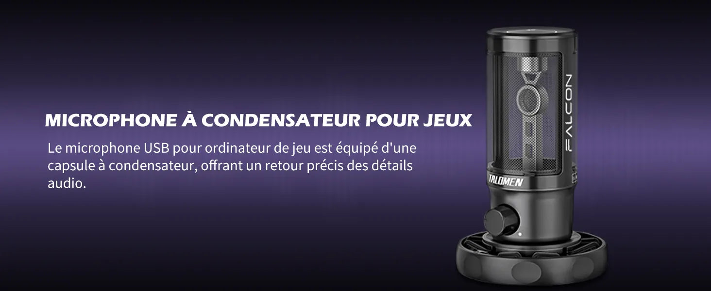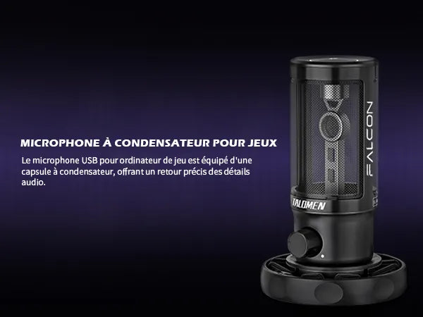 Le Talomen Falcon Stand est un microphone à condensateur cardioïde qui capte avec précision le son devant vous et réduit le bruit sur les côtés et à l'arrière. Il amplifie efficacement votre voix et réduit le bruit ambiant lorsque vous jouez ou diffusez en continu. Les microphones USB Talomen sont le cadeau idéal pour les joueurs et les YouTubeurs.