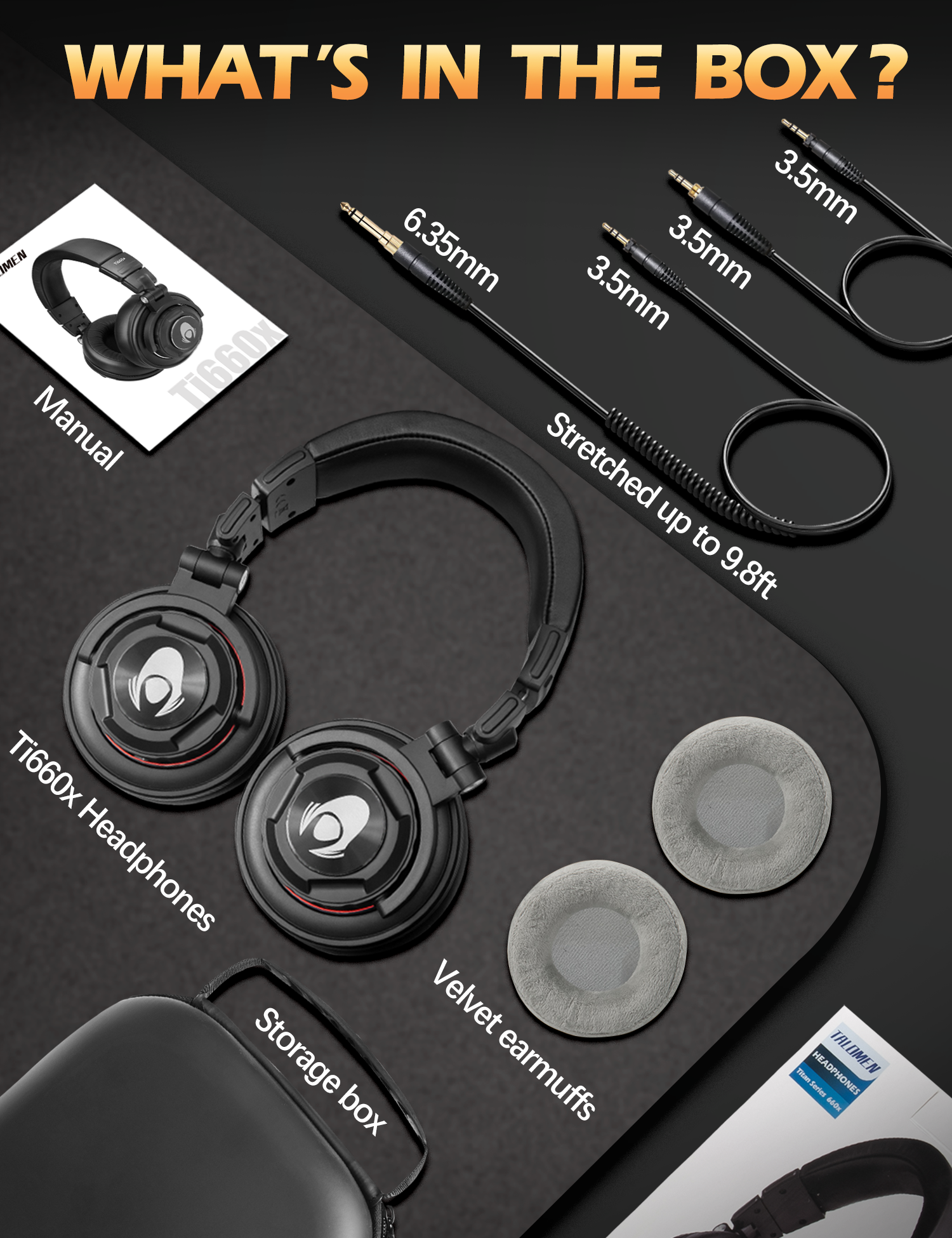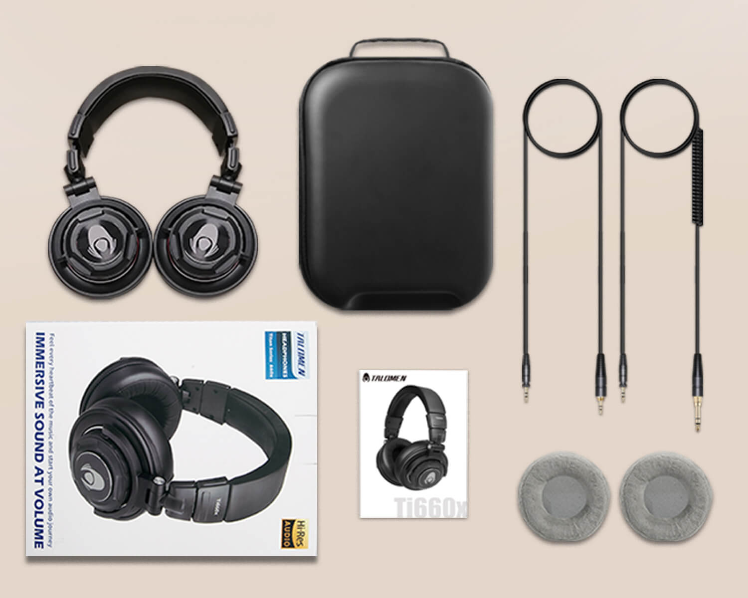 Talomen professional studio monitor headphones are ideal for the recording studio. Whether in terms of physical structure, comfortable design or sonic performance, the Ti660x is your ultimate choice for monitoring mixing, DJ, mastering, post-production, audio forensics and personal listening.